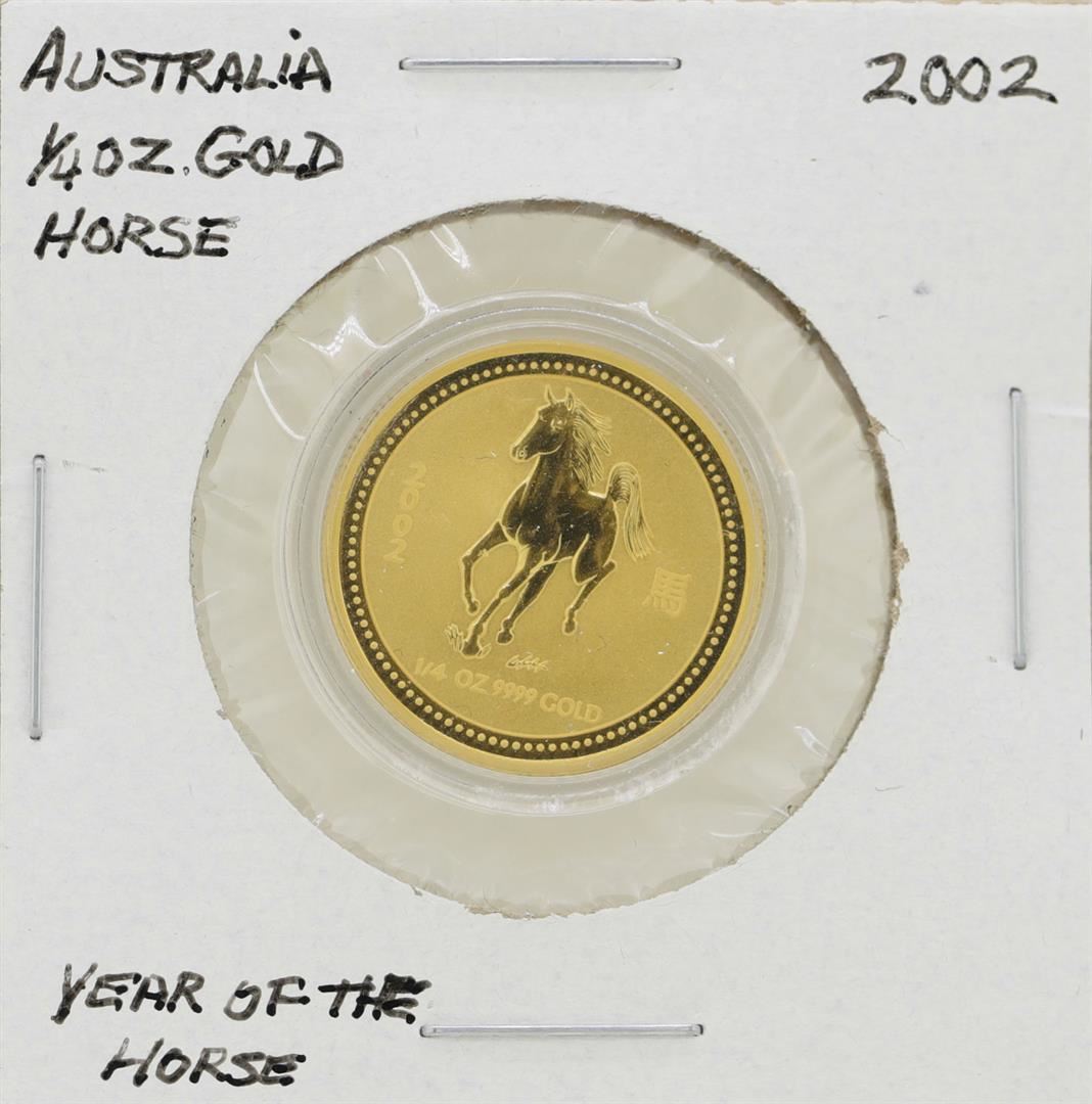 One 2002 $25 Australia Year of the Horse 1/4 oz. Gold Coin.