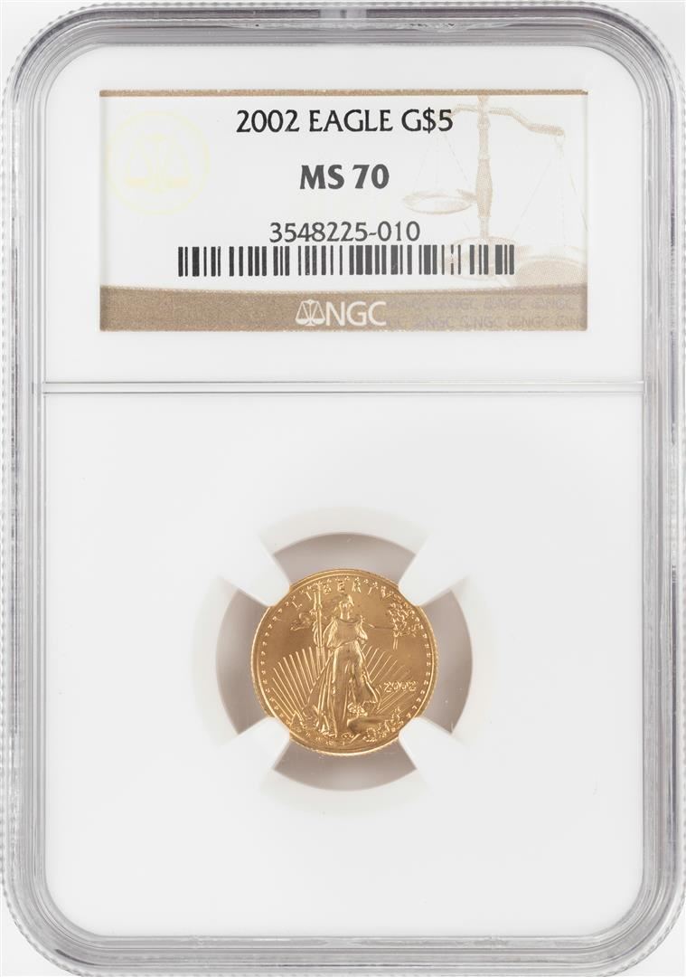 One 2002 $5 American Gold Eagle Coin NGC MS70. NGC Certified.