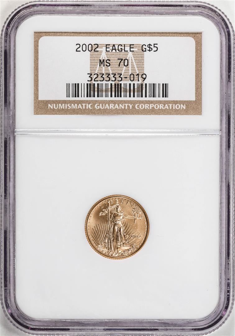 One 2002 $5 American Gold Eagle Coin NGC MS70. NGC Certified.