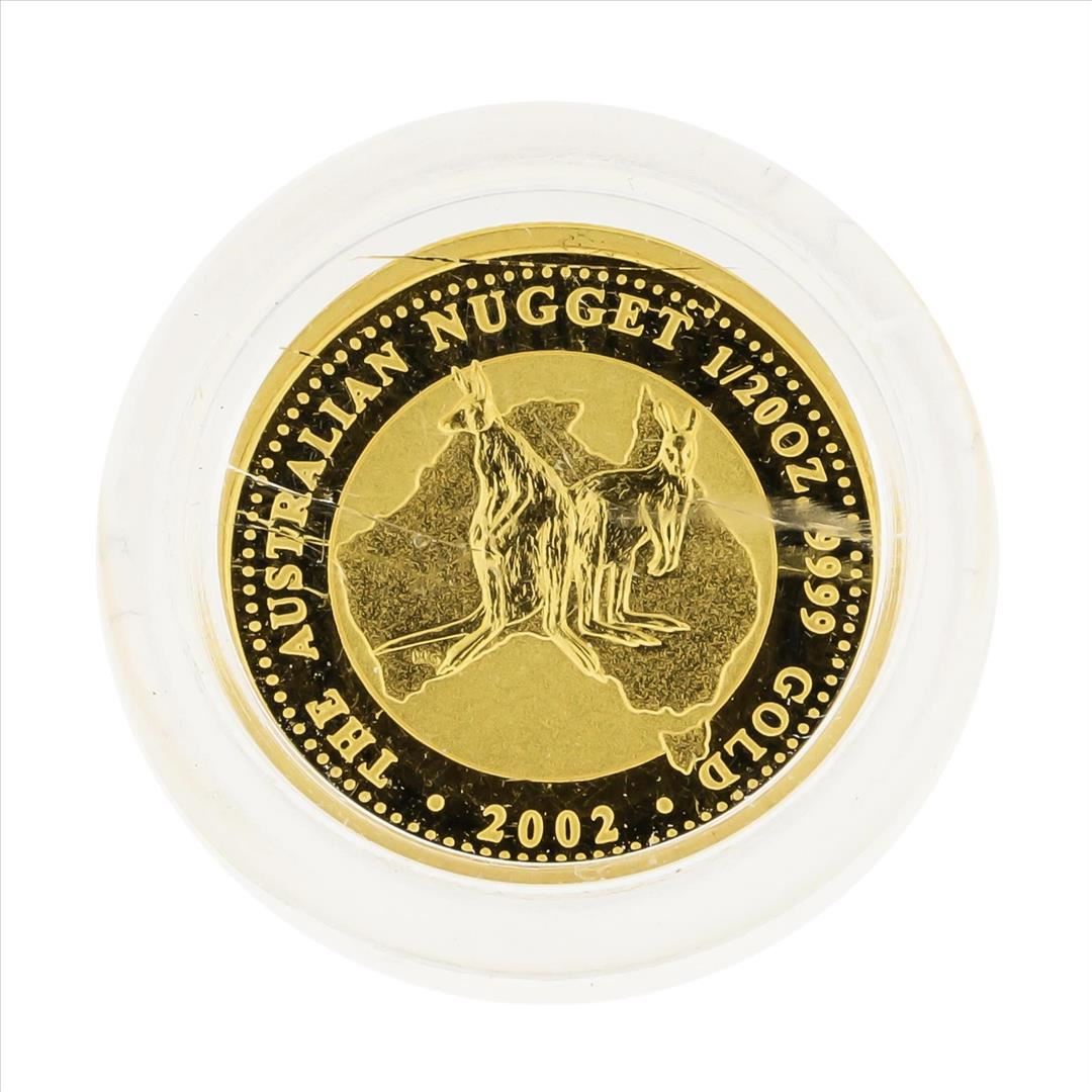 One 2002 Australia 1/20 oz Brilliant Uncirculated Kangaroo Gold Coin.