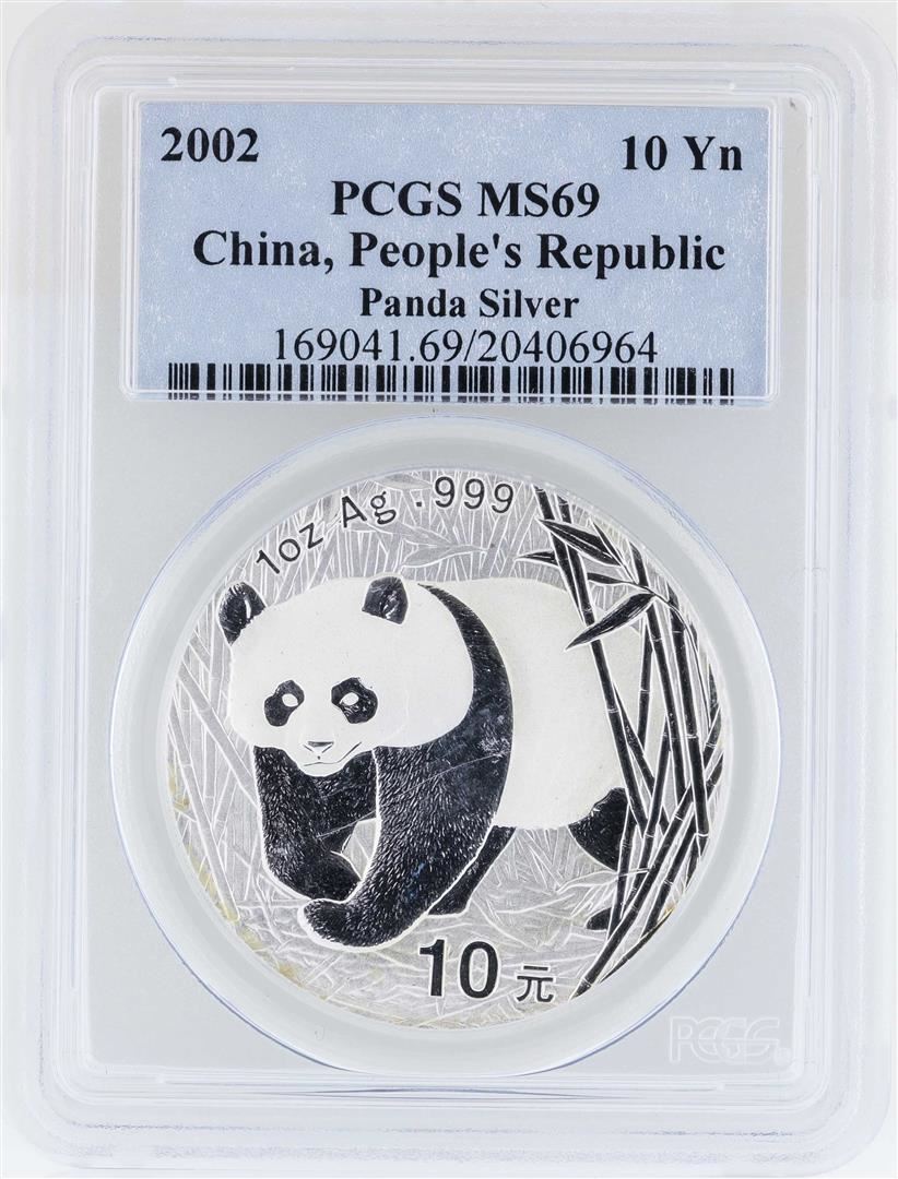 One 2002 China 10 Yuan People's Republic Panda Silver Coin PCGS MS69. PCGS Graded.