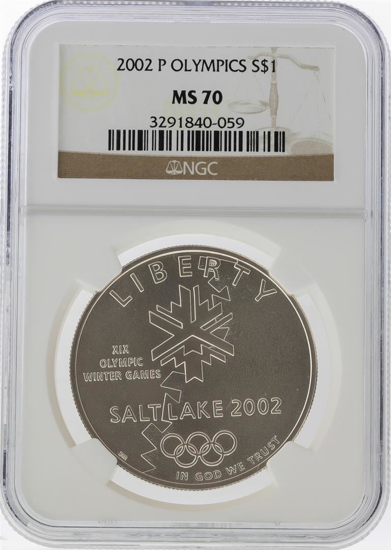 One 2002-P $1 Salt Lake Olympics Silver Coin NGC MS70. NGC Certified.