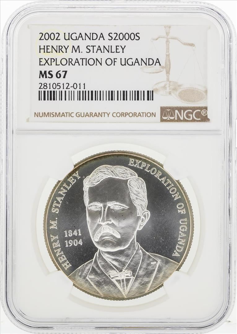 One 2002 Uganda 2000 Shillings Henry M Stanley Silver Coin NGC MS67. NGC Certified.