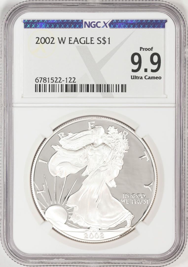 One 2002-W $1 American Silver Eagle Coin NGCX Proof 9.9 Ultra Cameo. NGC Certified.