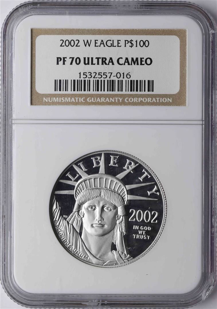One 2002-W $100 Platinum American Eagle Coin NGC PF70 Ultra Cameo. NGC Certified.
