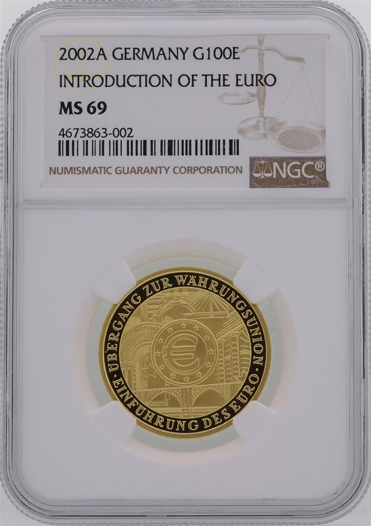 One 2002A Germany 100 Euro Introduction of the Euro Gold Coin NGC MS69. NGC Certified.