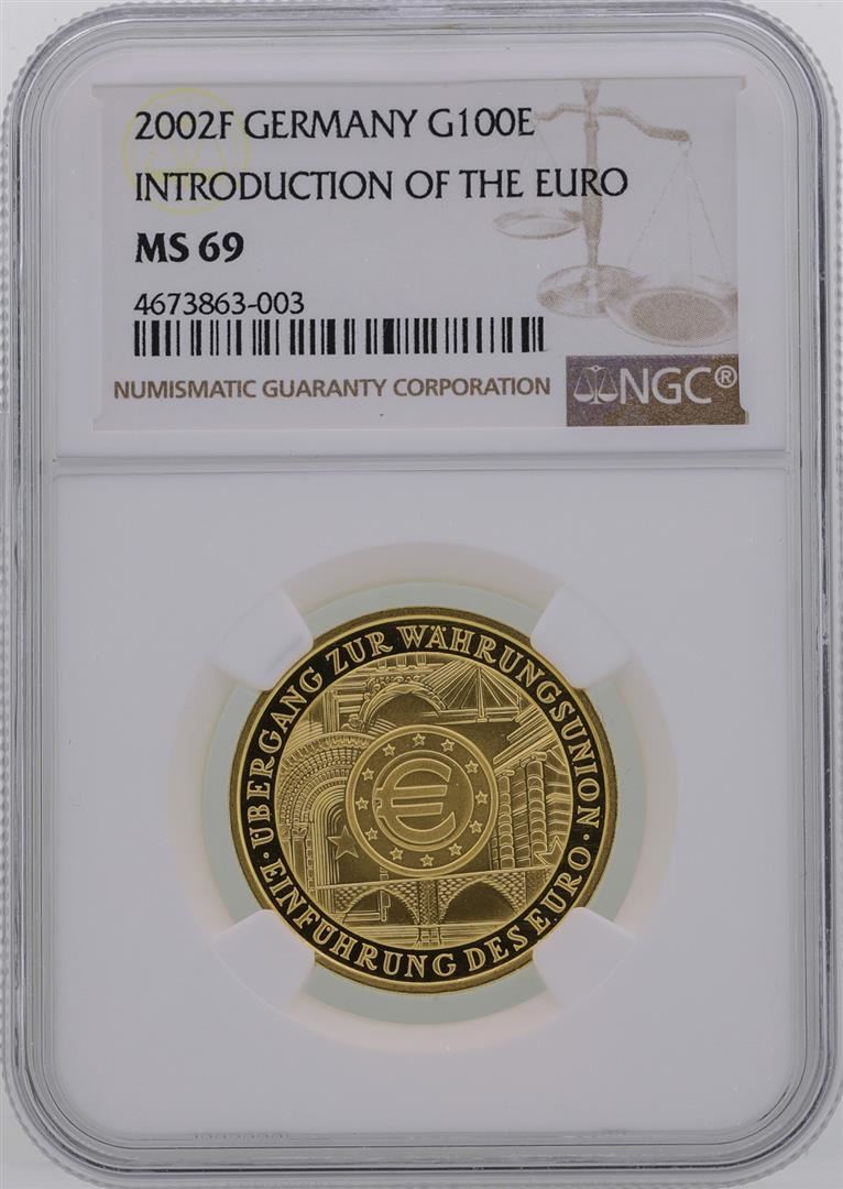 One 2002F Germany 100 Euro Introduction of the Euro Gold Coin NGC MS69. NGC Certified.