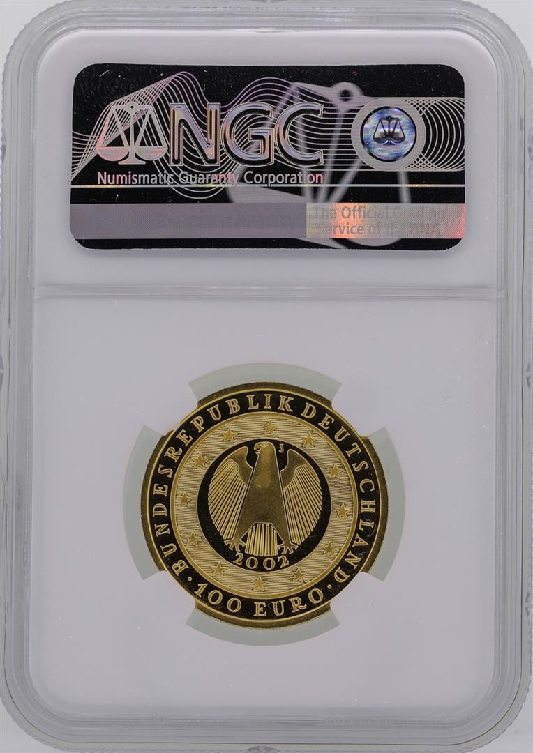 One 2002J Germany 100 Euro Introduction of the Euro Gold Coin NGC MS69. NGC Certified.