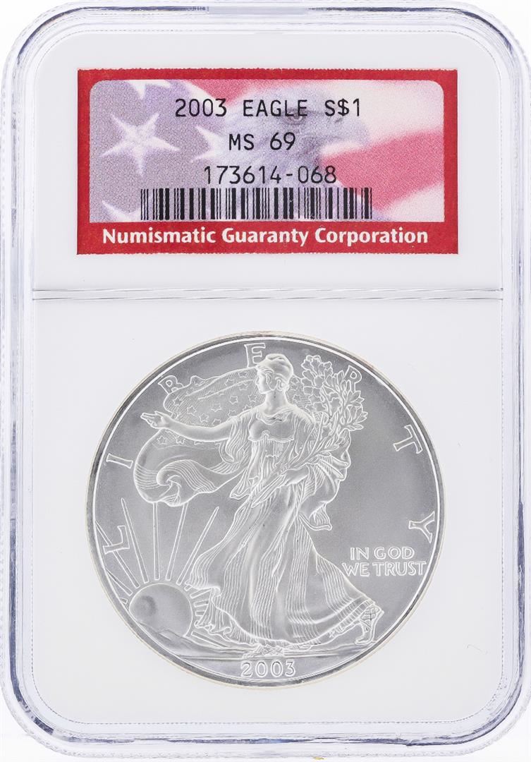 One 2003 $1 American Silver Eagle Coin NGC Graded MS69. NGC Certified.