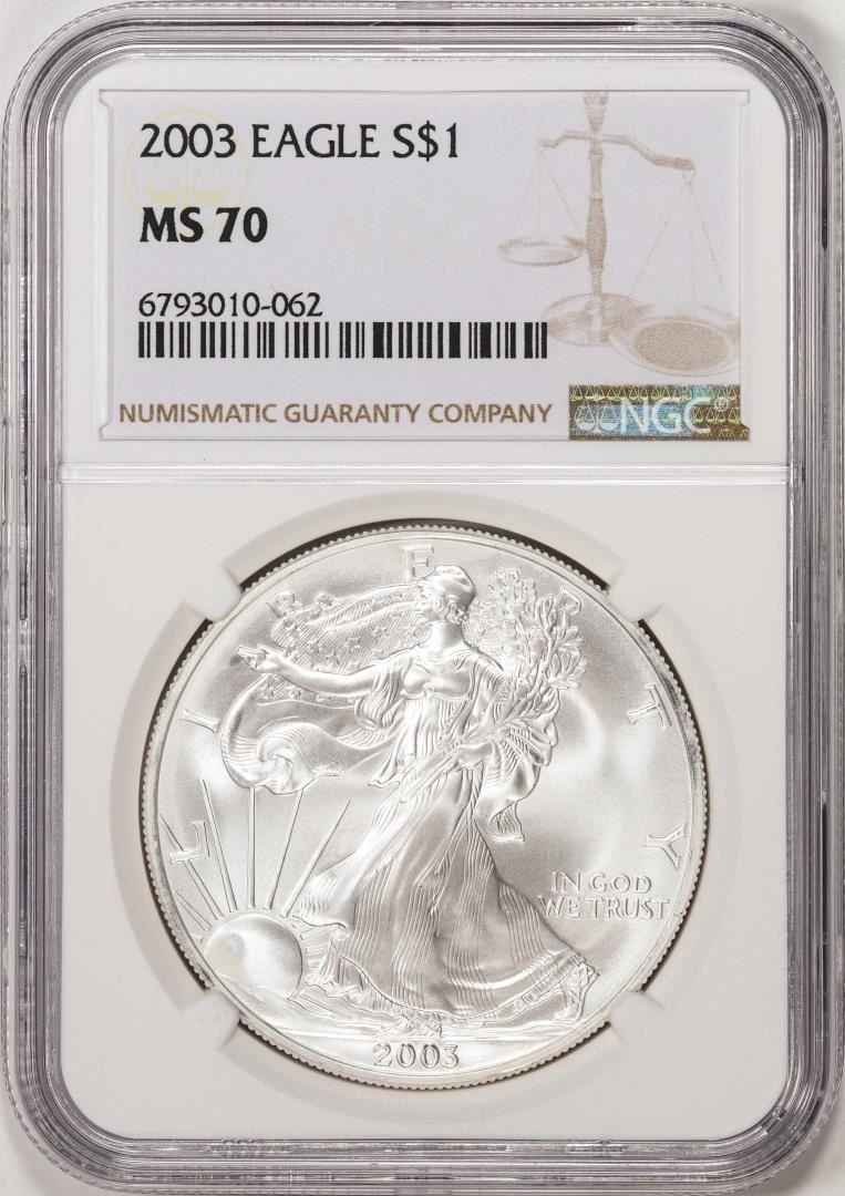 One 2003 $1 American Silver Eagle Coin NGC MS70. NGC Certified.