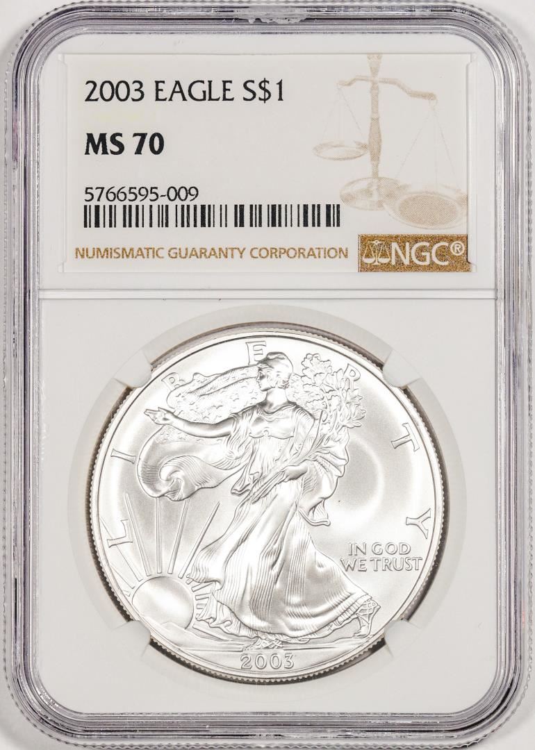 One 2003 $1 American Silver Eagle Coin NGC MS70. NGC Certified.