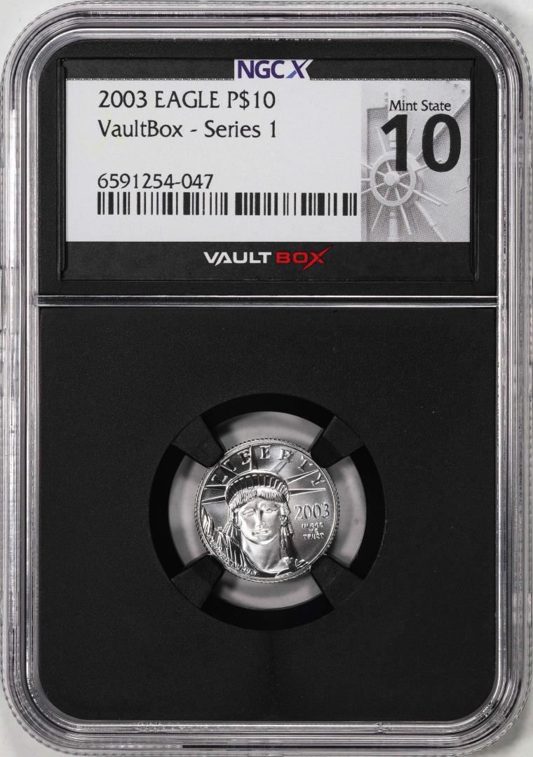 One 2003 $10 American Platinum Eagle NGCX Mint State 10 VaultBox Series 1. NGC Certified.