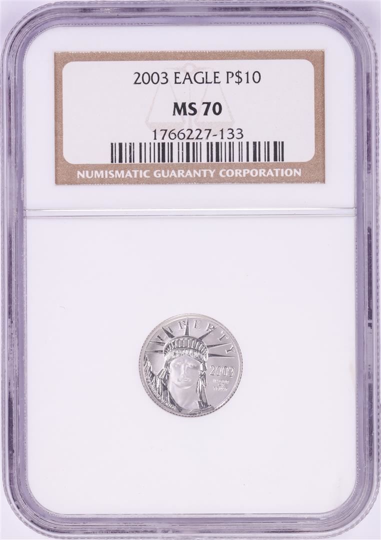 One 2003 $10 Platinum American Eagle Coin NGC MS70. NGC Certified.