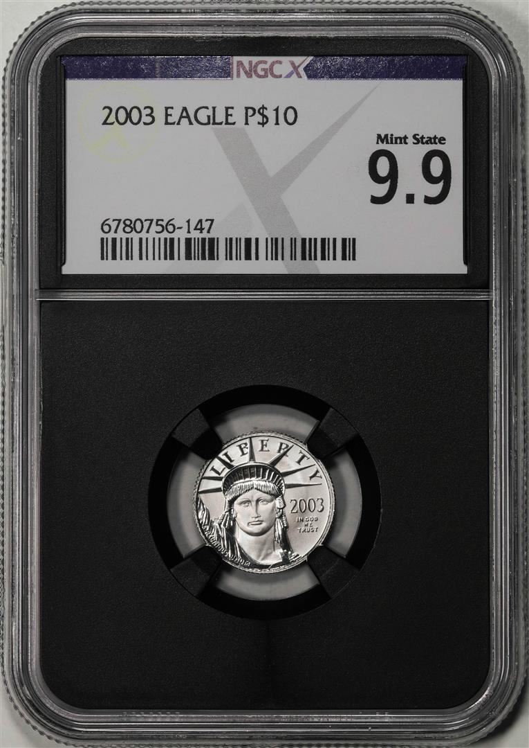 One 2003 $10 Platinum American Eagle Coin NGCX Mint State 9.9. NGCX Certified.