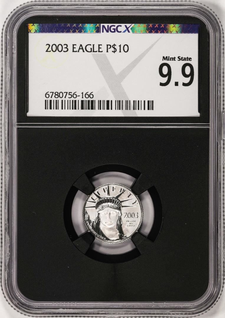 One 2003 $10 Platinum American Eagle Coin NGCX Mint State 9.9. NGCX Certified.