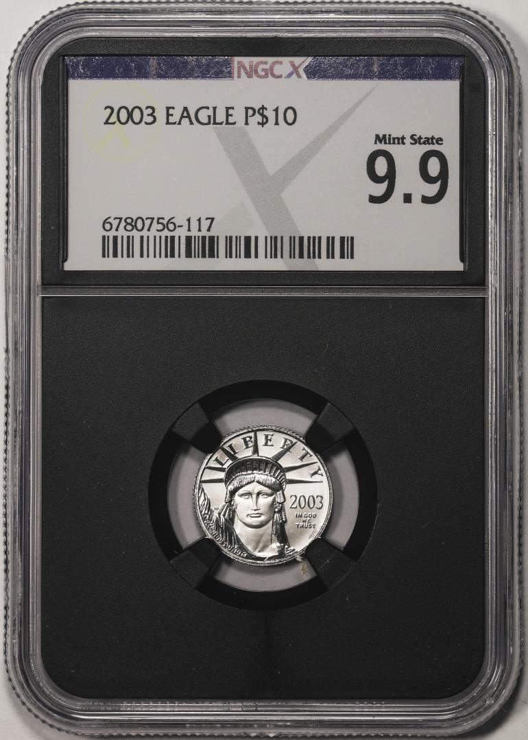 One 2003 $10 Platinum American Eagle Coin NGCX Mint State 9.9. NGCX Certified.