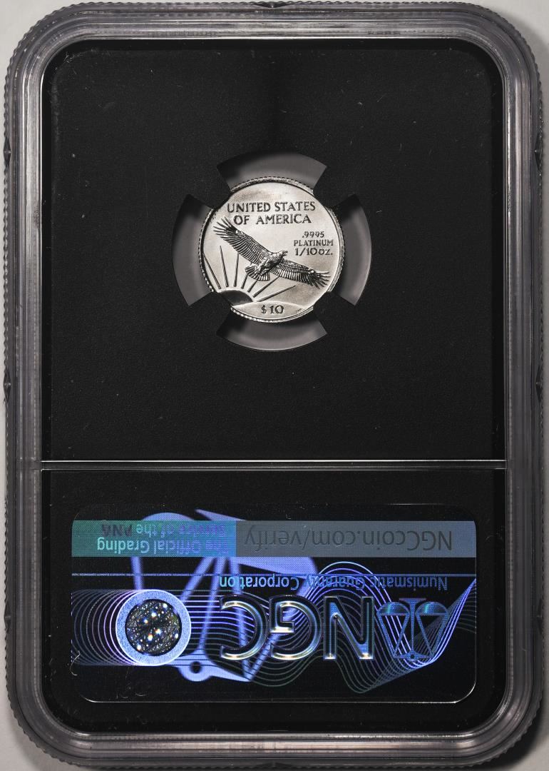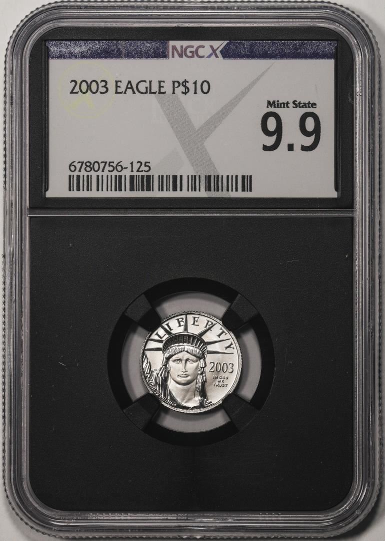 One 2003 $10 Platinum American Eagle Coin NGCX Mint State 9.9. NGCX Certified.