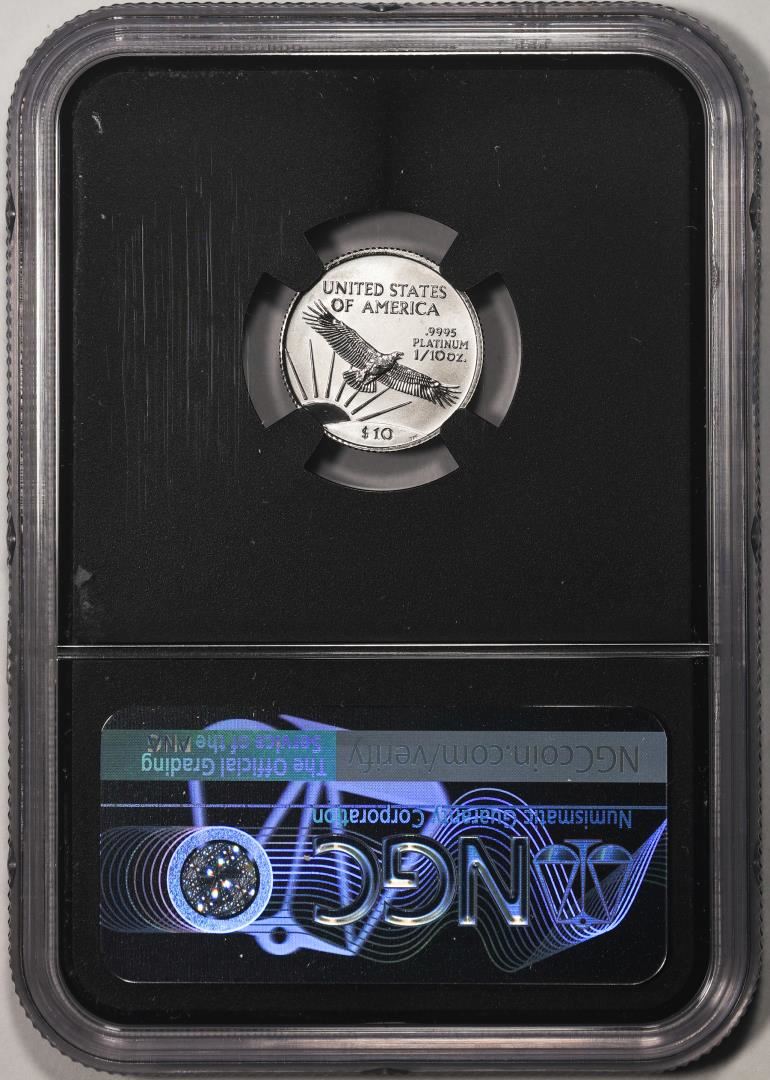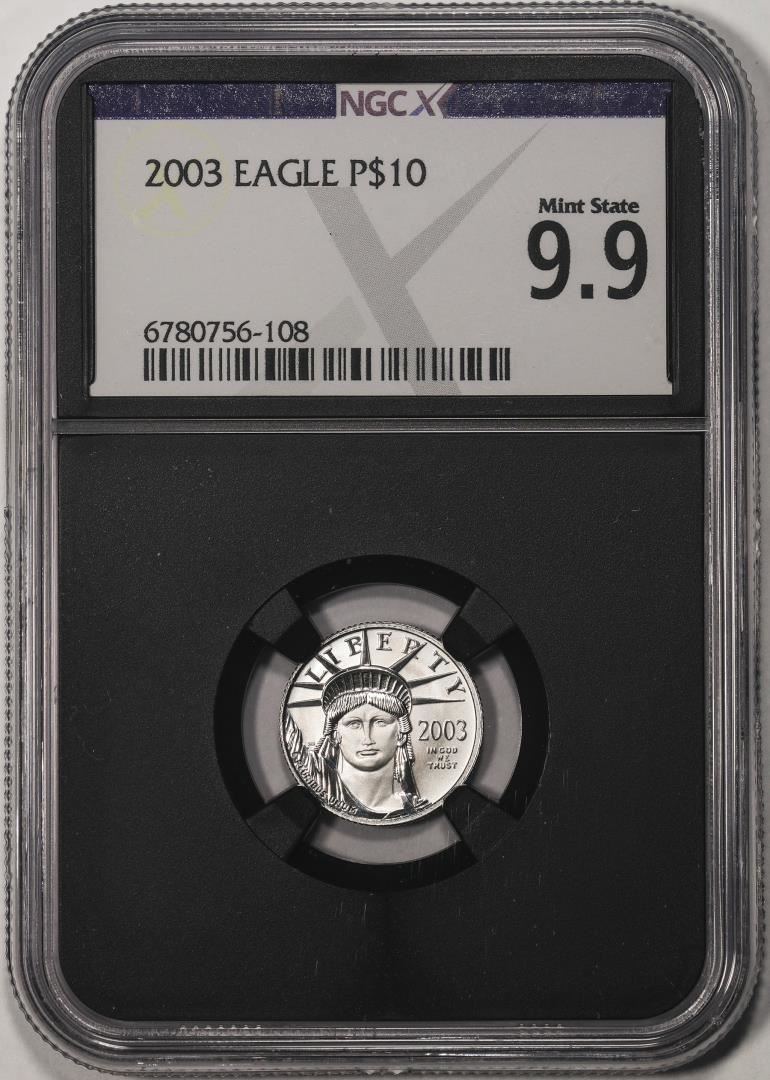 One 2003 $10 Platinum American Eagle Coin NGCX Mint State 9.9. NGCX Certified.