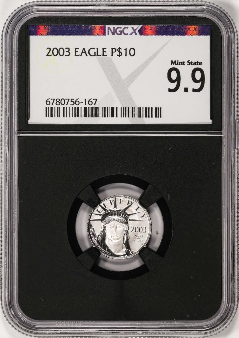 One 2003 $10 Platinum American Eagle Coin NGCX Mint State 9.9. NGCX Certified.