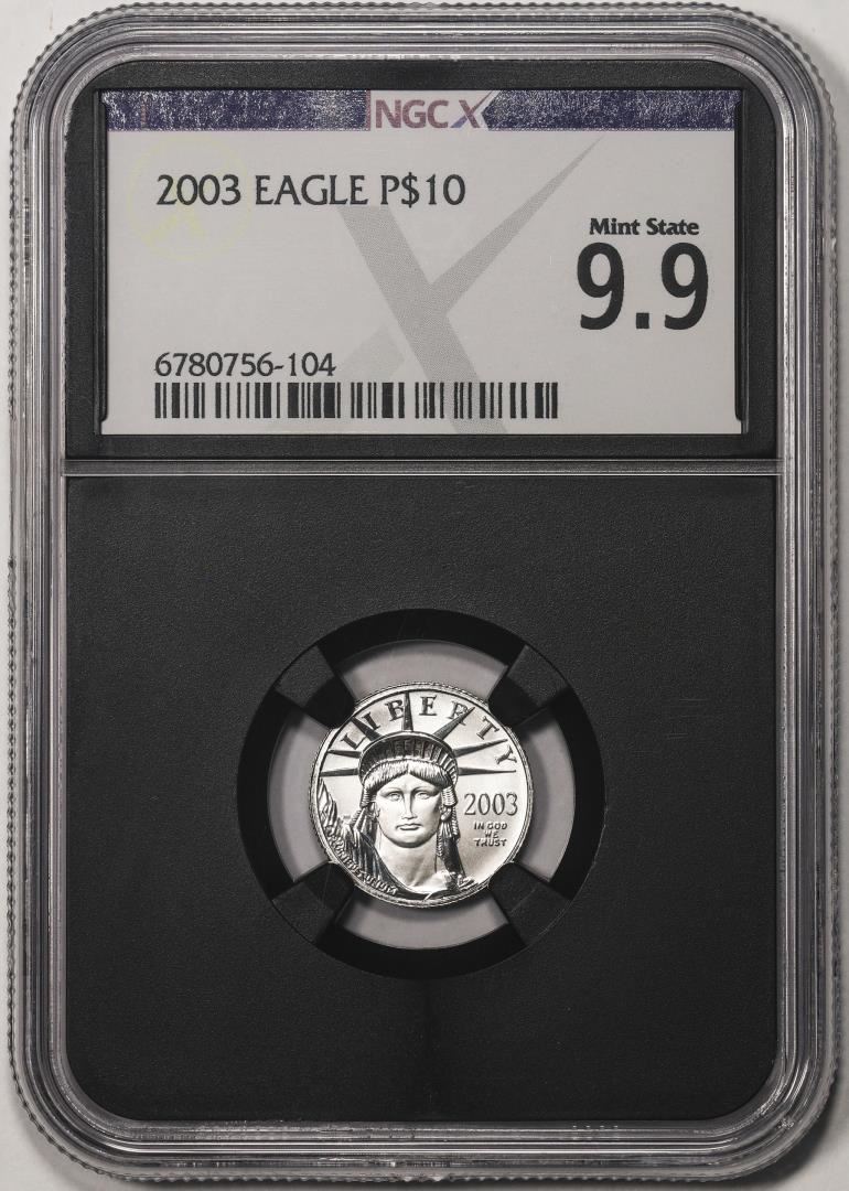 One 2003 $10 Platinum American Eagle Coin NGCX Mint State 9.9. NGCX Certified.