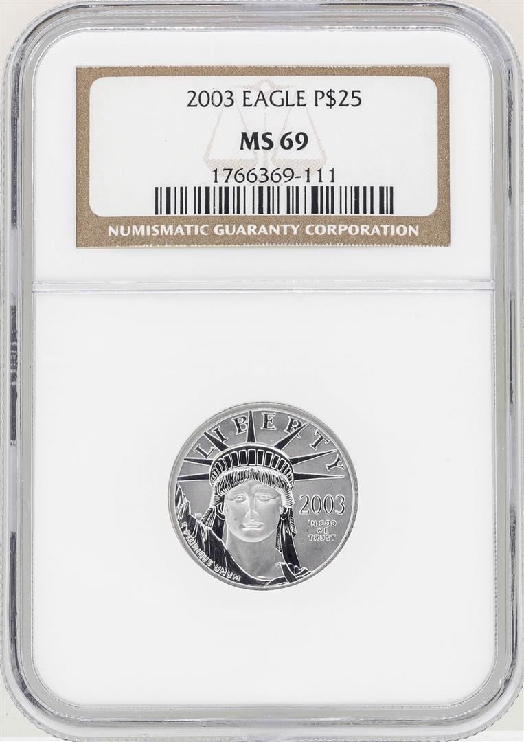 One 2003 $25 Platinum American Eagle Coin NGC MS69. NGC Certified.