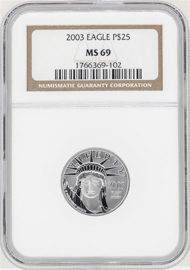 One 2003 $25 Platinum American Eagle Coin NGC MS69. NGC Certified.