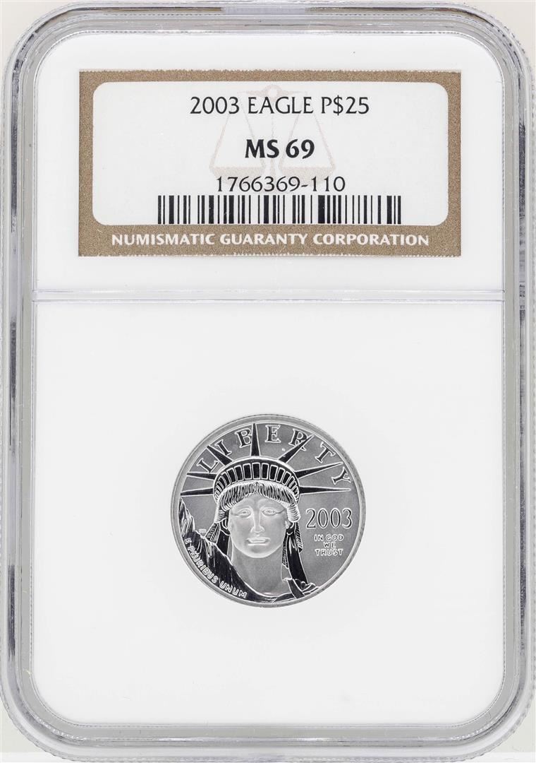 One 2003 $25 Platinum American Eagle Coin NGC MS69. NGC Certified.
