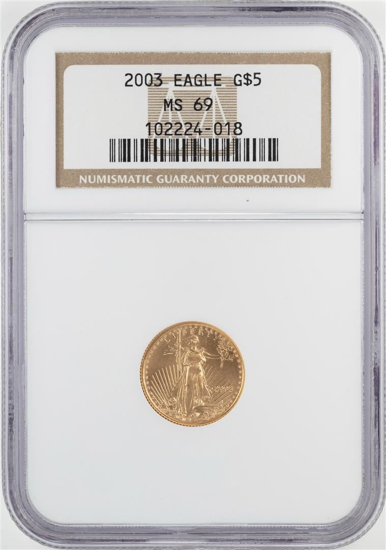 One 2003 $5 American Gold Eagle Coin NGC MS69. NGC Certified.