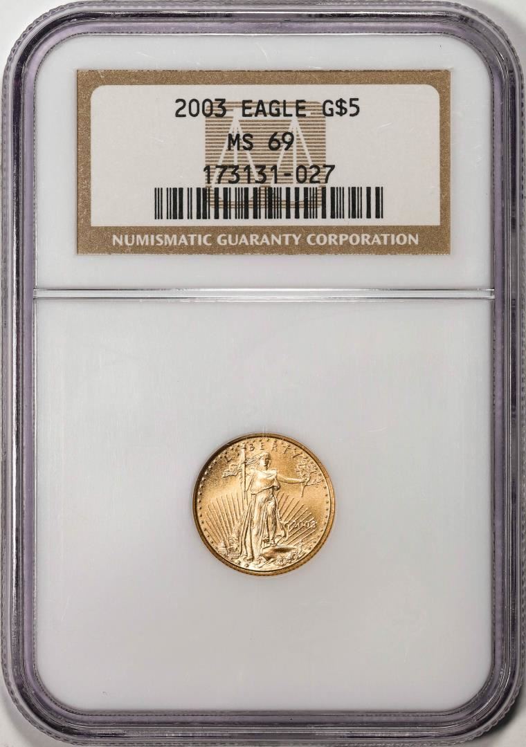 One 2003 $5 American Gold Eagle Coin NGC MS69. NGC Certified.