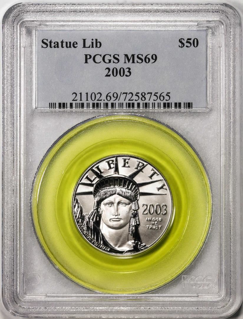 One 2003 $50 Statue of Liberty Platinum Eagle Coin PCGS MS69. PCGS Graded.