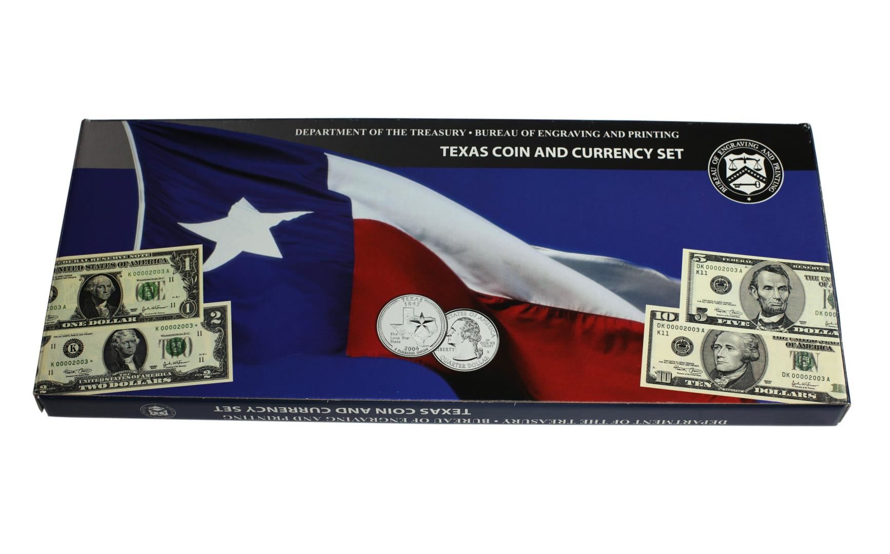 2003 Department of the Treasury BEP Texas Coin and Currency Set Matching Serial #'s