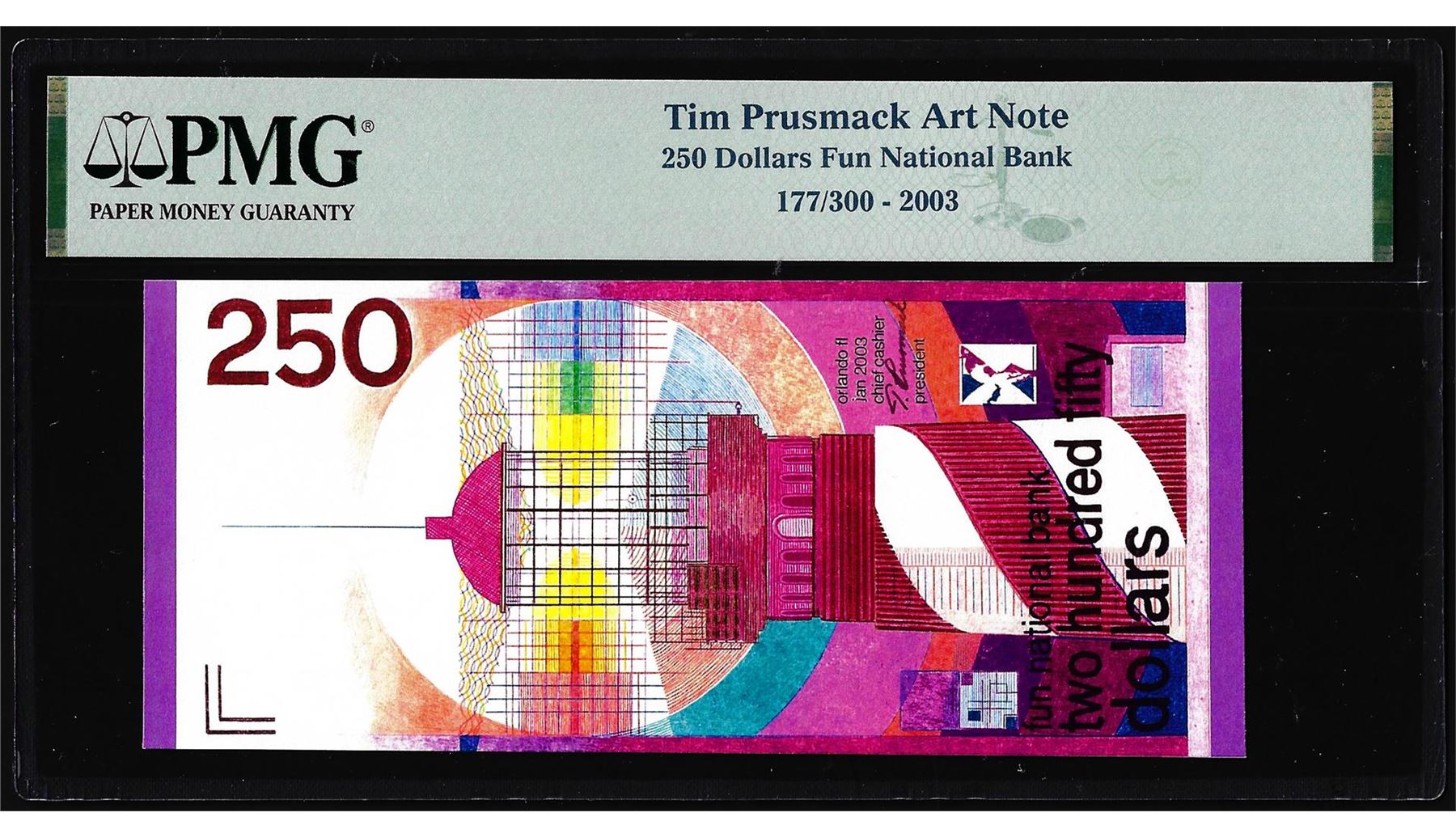 One 2003 Tim Prusmack Money Art $250 Fun National Bank Note PMG Certified. PMG Certified.