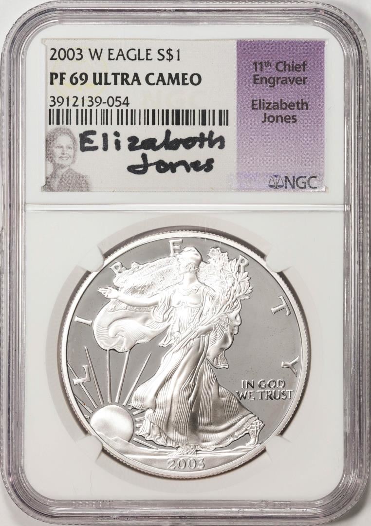 2003-W $1 Proof American Silver Eagle Coin NGC PF69 Ultra Cameo Jones Signature