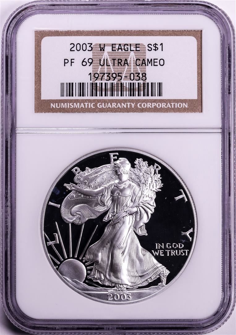 2003-W $1 Proof American Silver Eagle Coin NGC PF69 Ultra Cameo