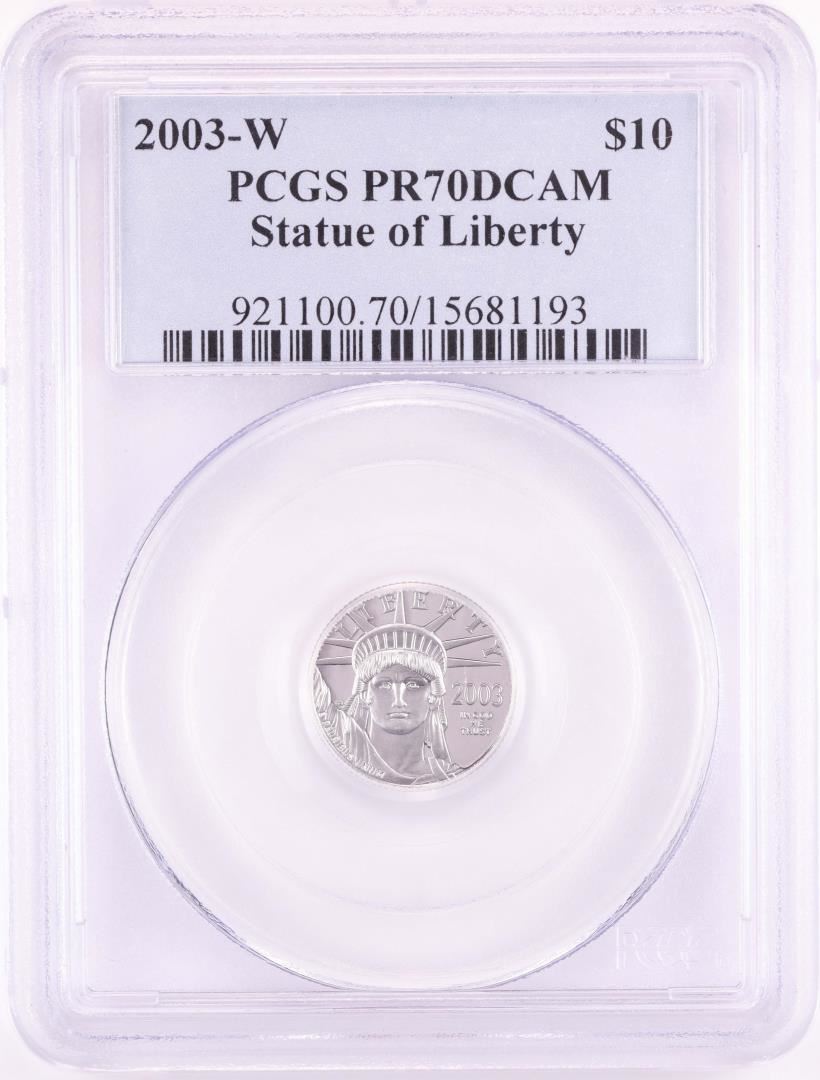 One 2003-W $10 Proof American Platinum Eagle Coin PCGS PR70DCAM. PCGS Graded.
