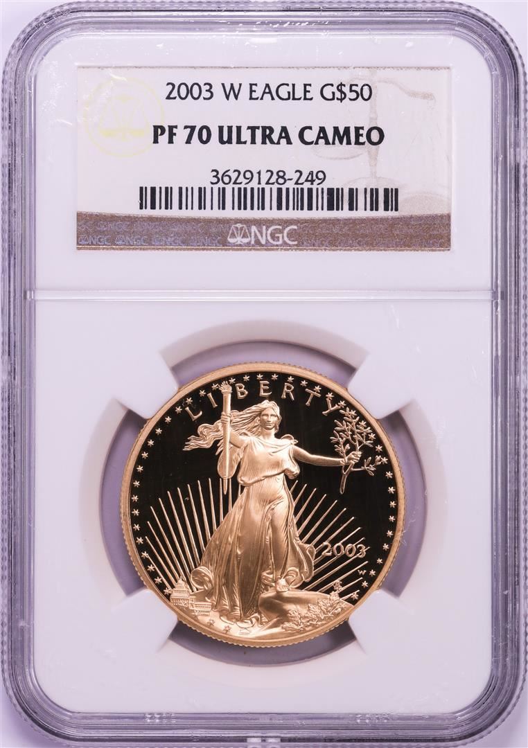 One 2003-W $50 Proof American Gold Eagle Coin NGC PF70 Ultra Cameo. NGC Certified.