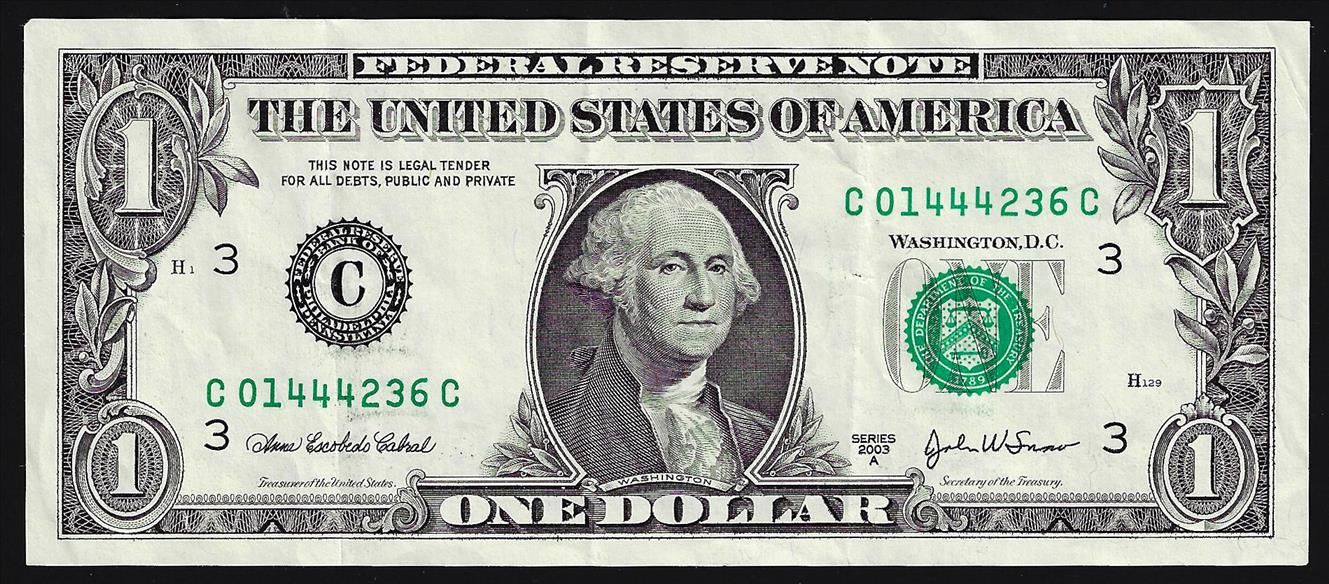 One 2003A $1 Federal Reserve Note Full Offset ERROR.