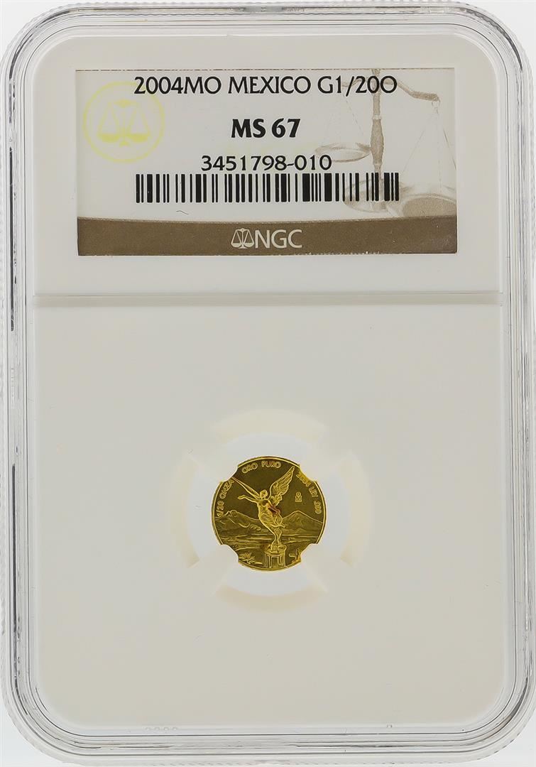 One 2004 1/20 oz Mexico Gold Libertad Coin NGC Graded MS67. NGC Certified.
