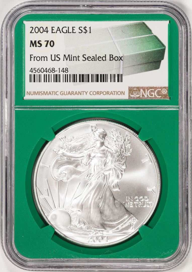 2004 $1 American Silver Eagle Coin NGC MS70 From US Mint Sealed Box Green Core