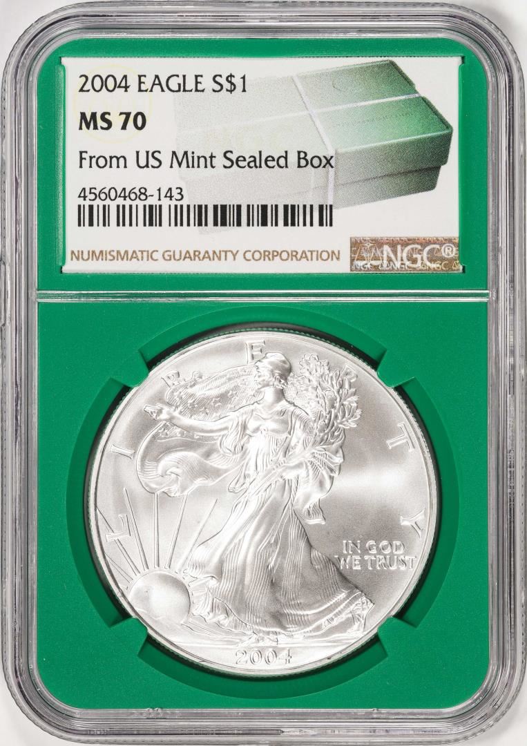 2004 $1 American Silver Eagle Coin NGC MS70 From US Mint Sealed Box Green Core