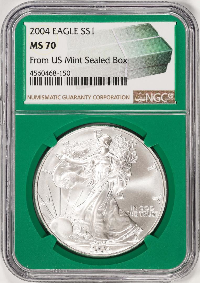 2004 $1 American Silver Eagle Coin NGC MS70 From US Mint Sealed Box Green Core