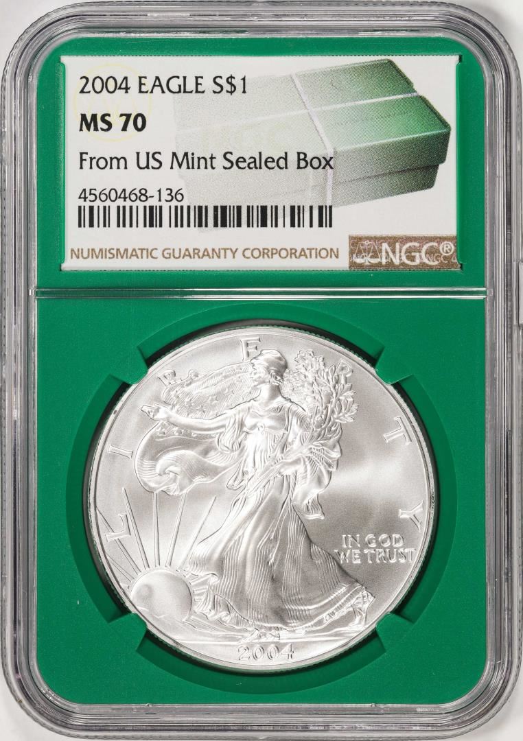2004 $1 American Silver Eagle Coin NGC MS70 From US Mint Sealed Box Green Core