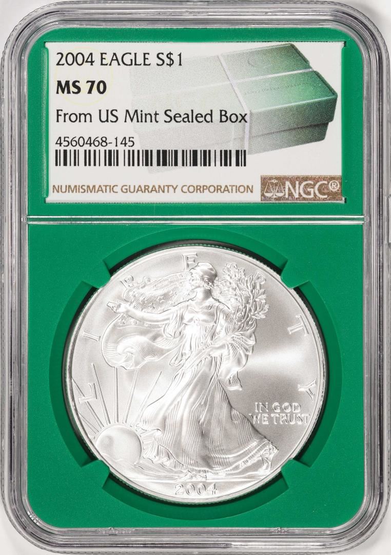 2004 $1 American Silver Eagle Coin NGC MS70 From US Mint Sealed Box Green Core