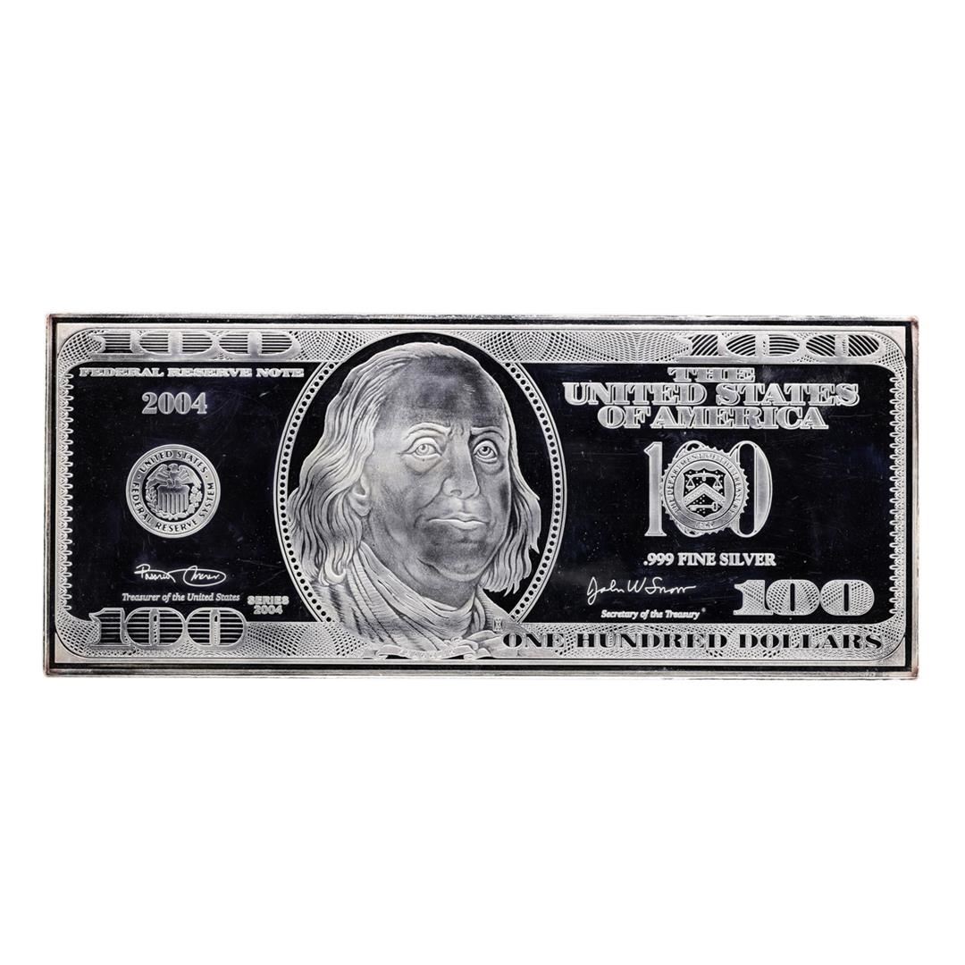 One 2004 $100 Washington Mint 4 oz. .999 Fine Silver Bar.