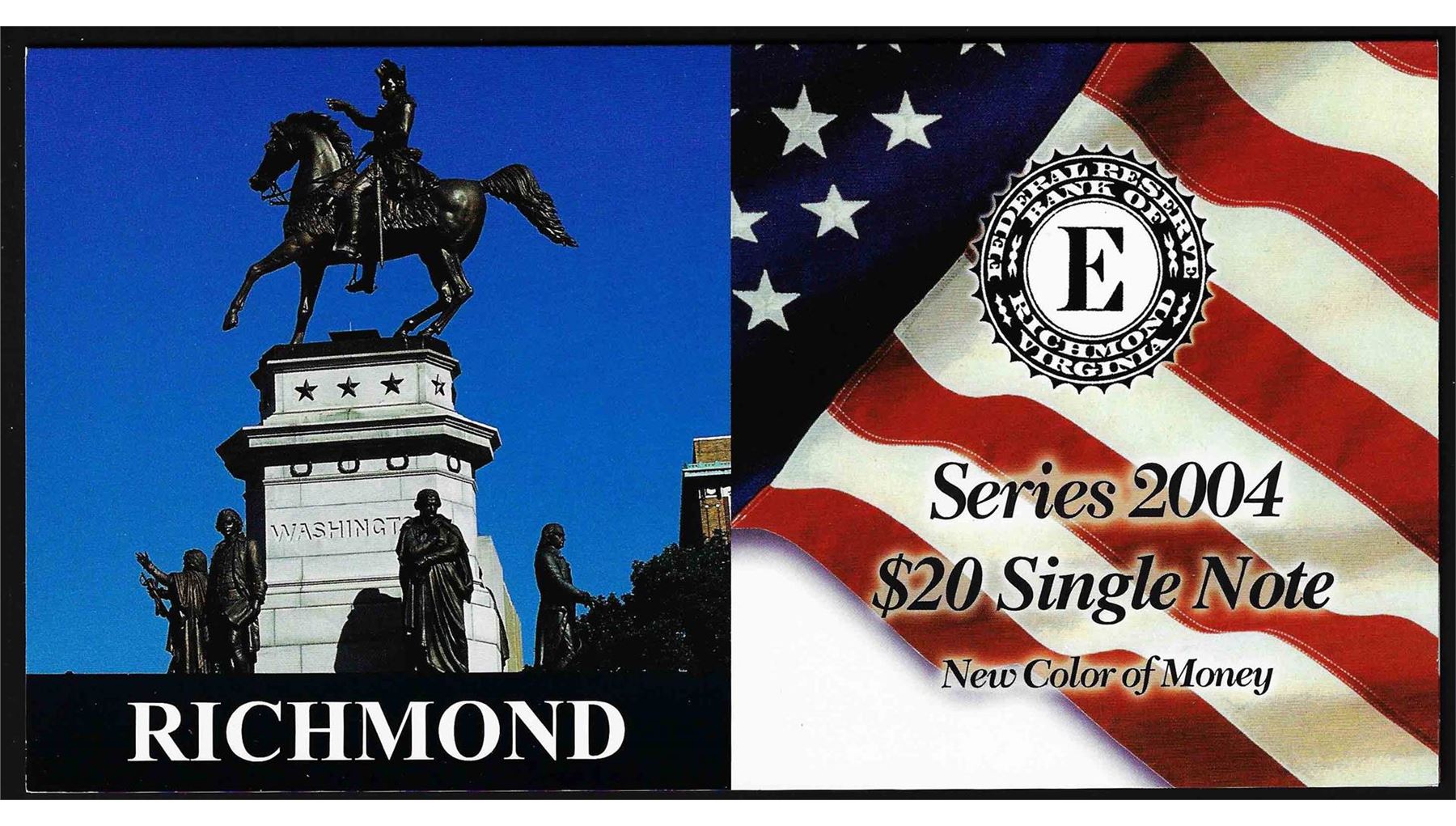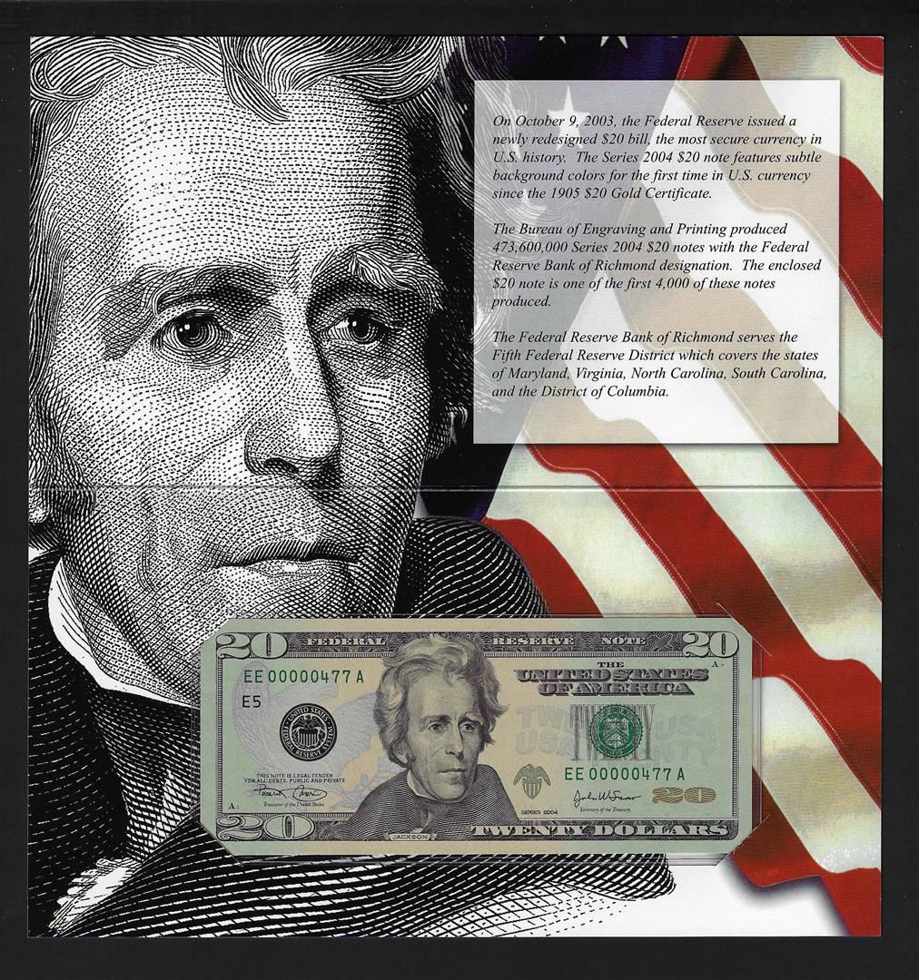 One 2004 $20 Federal Reserve Note Uncirculated LOW SERIAL Number.