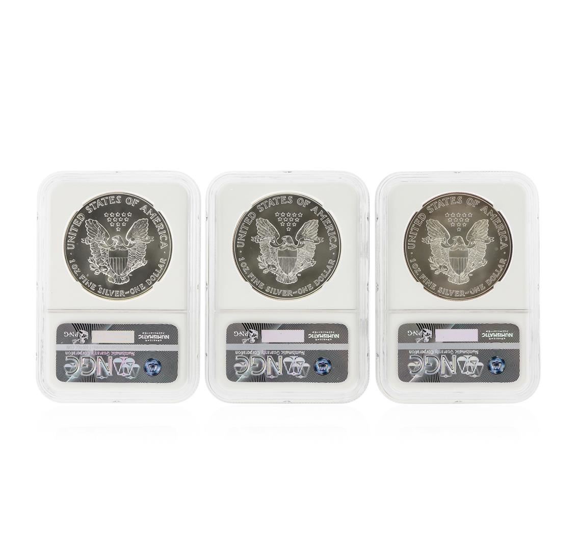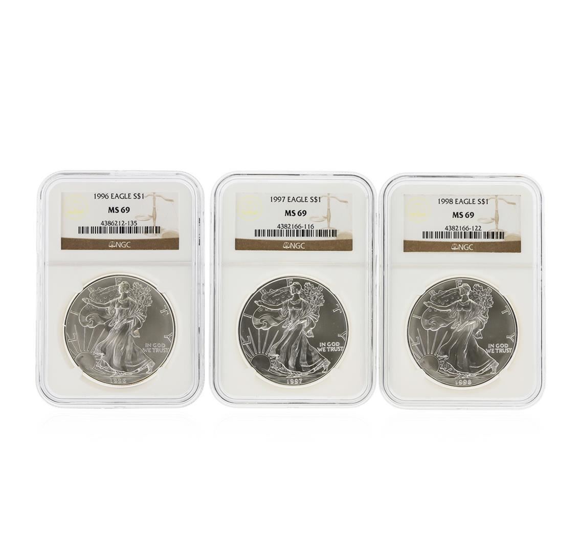 One 2004-2006 $1 American Silver Eagle Coin Set NGC MS69. NGC Certified.