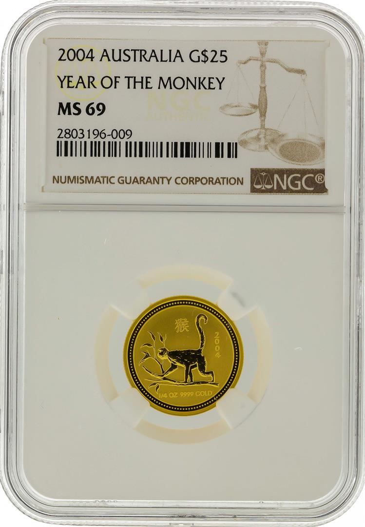 2004 $25 Australian Gold Coin Year of the Monkey NGC Graded MS69