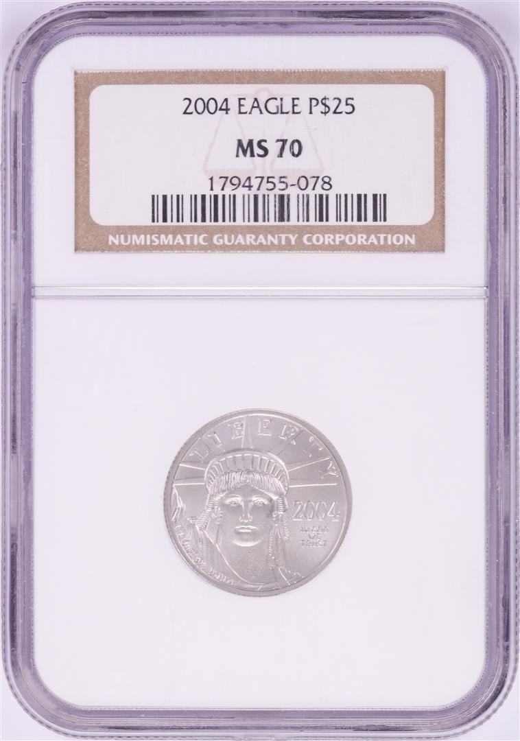 One 2004 $25 Platinum American Eagle Coin NGC MS70. NGC Certified.
