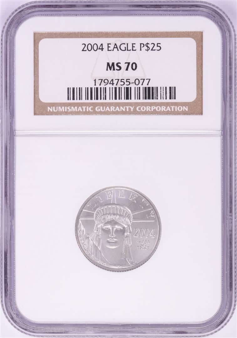 One 2004 $25 Platinum American Eagle Coin NGC MS70. NGC Certified.