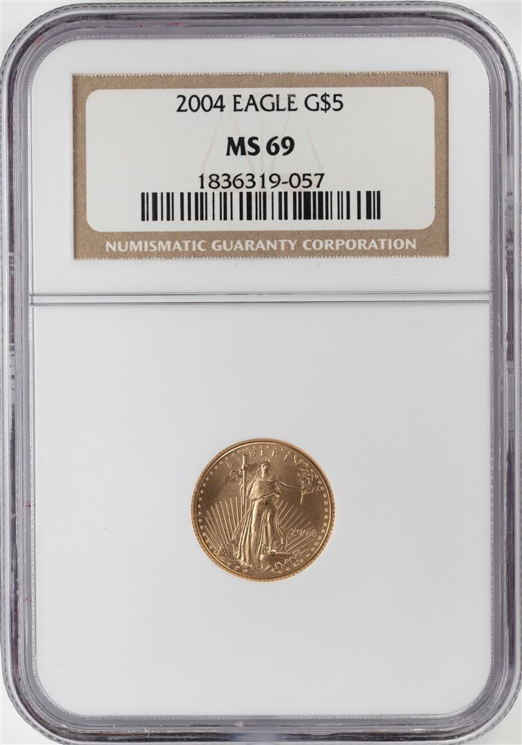 One 2004 $5 American Gold Eagle Coin NGC MS69. NGC Certified.